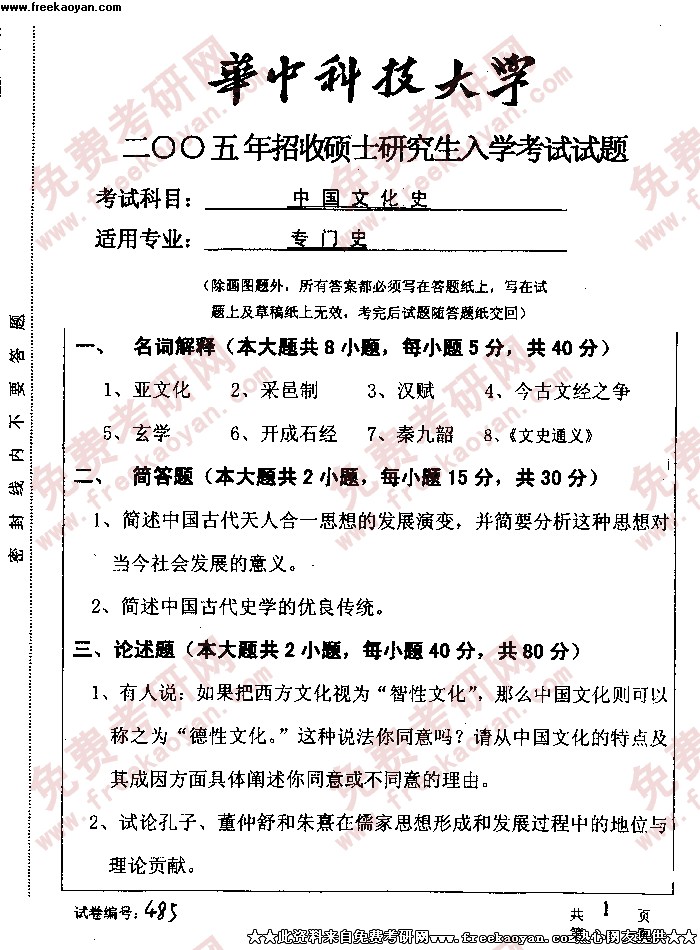 华中科技大学2005年半岛在线注册真题-中国文化史