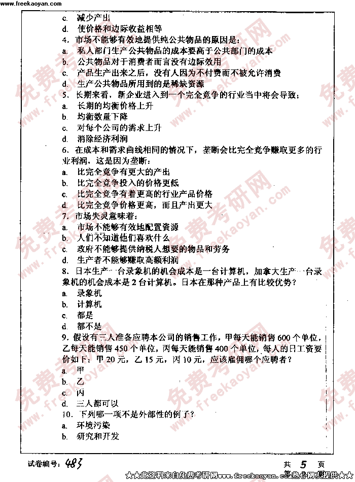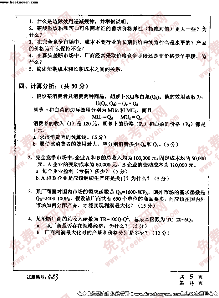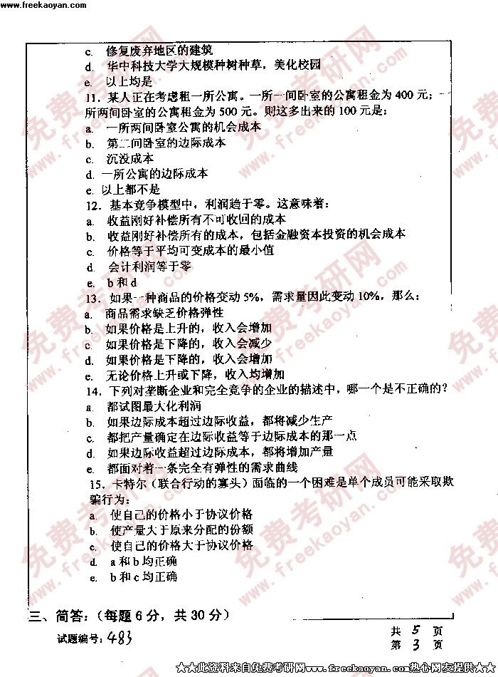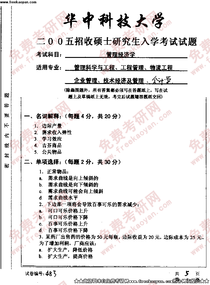 华中科技大学2005年半岛在线注册真题-管理经济学