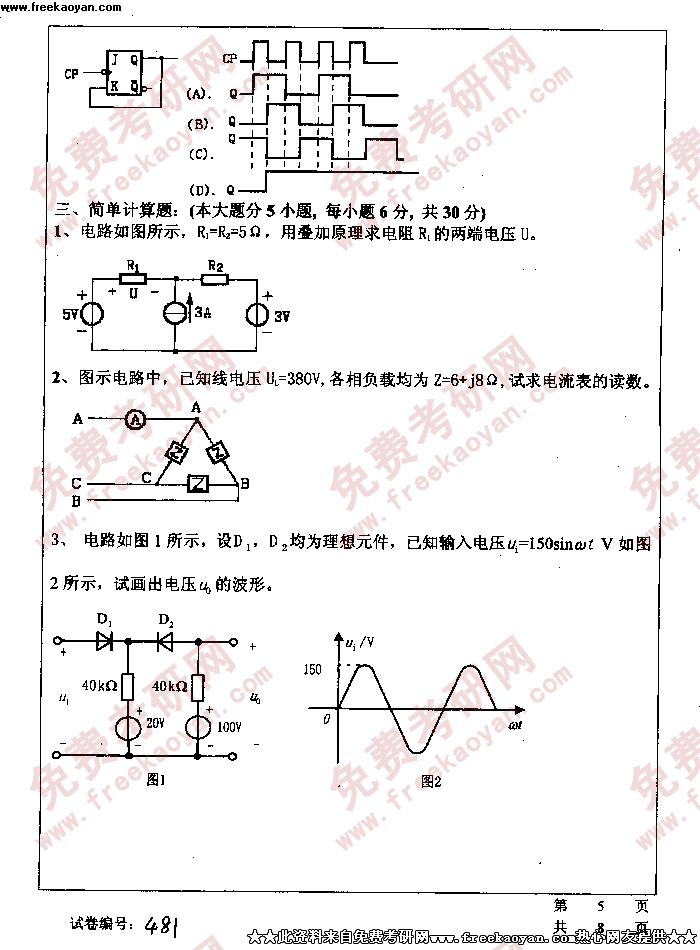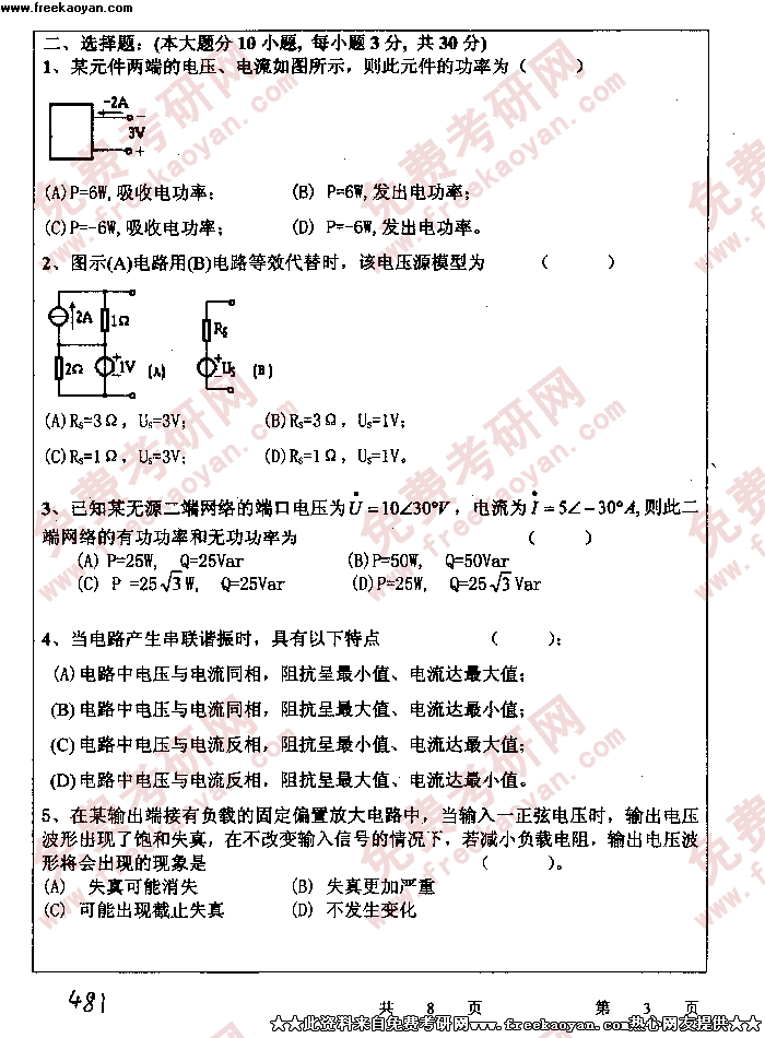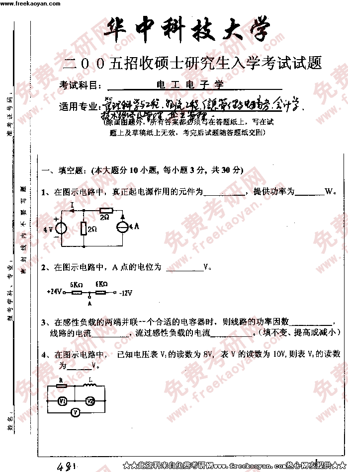华中科技大学2005年半岛在线注册真题-电工电子学