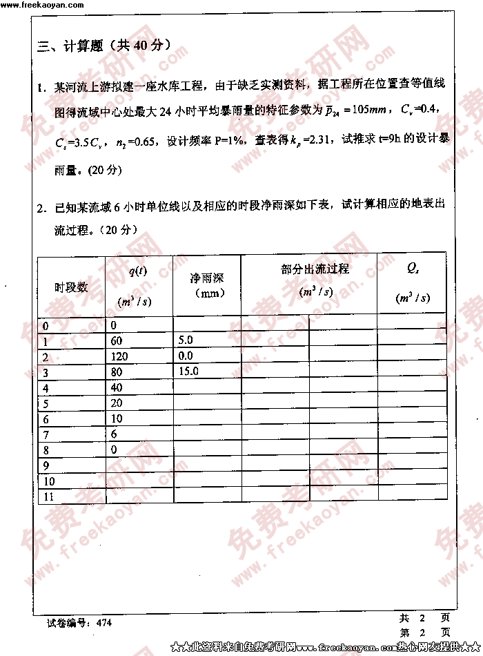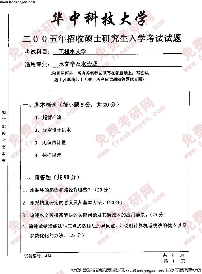 华中科技大学2005年半岛在线注册真题-工程水文学