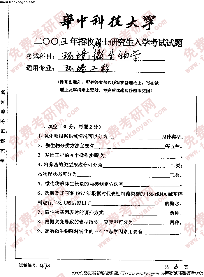 华中科技大学2005年半岛在线注册真题-环境微生物学