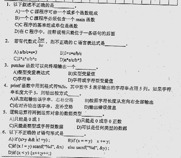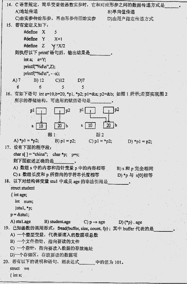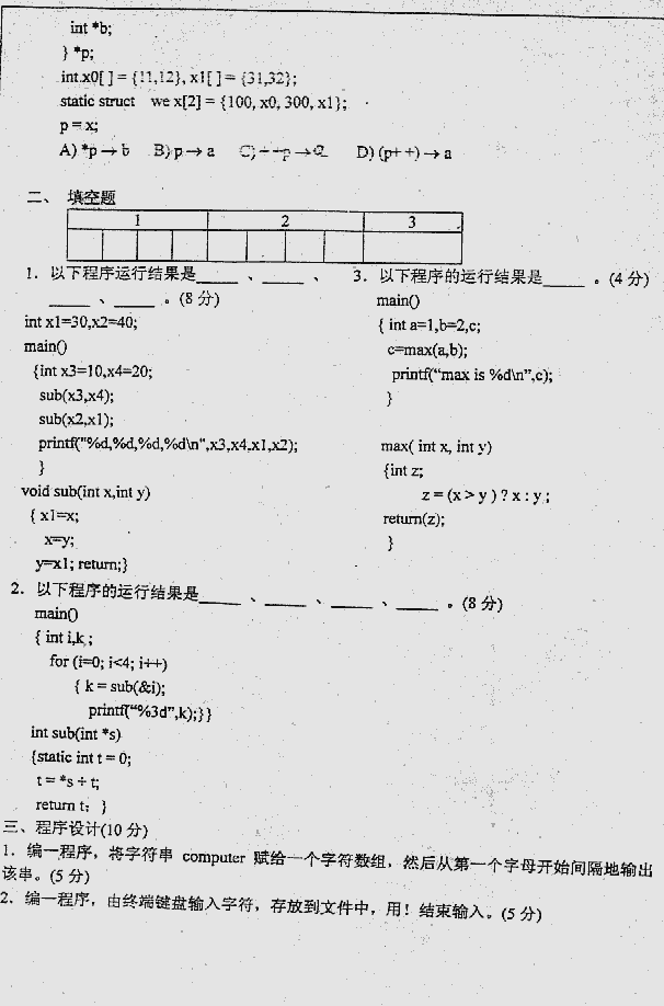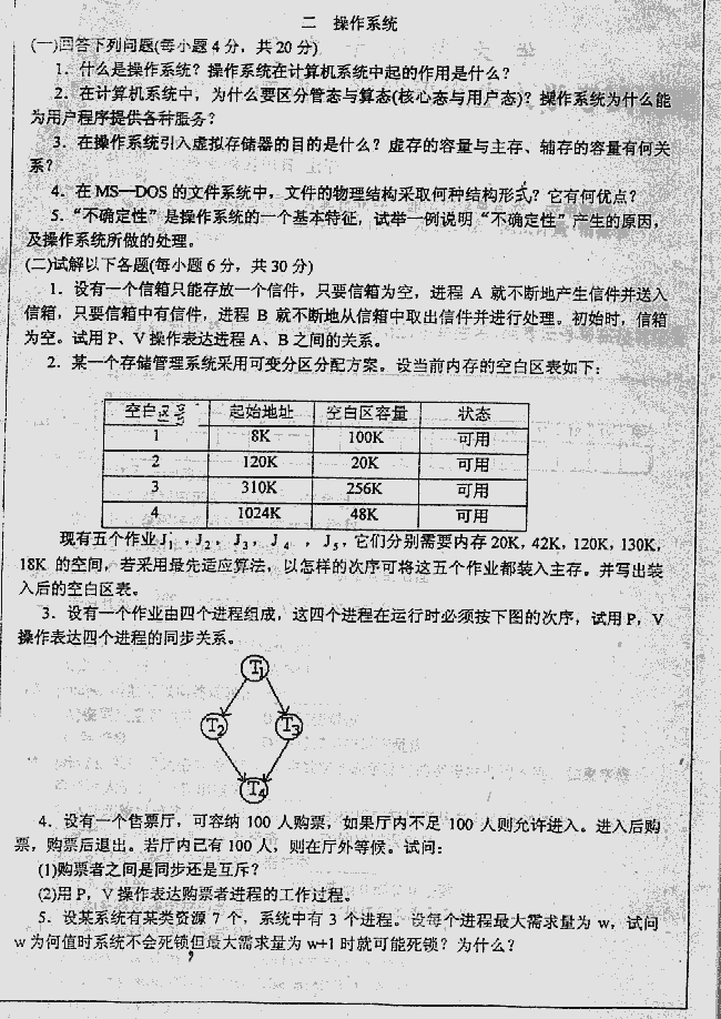西安电子科技大学1999年半岛在线注册真题-操作系统和C语言