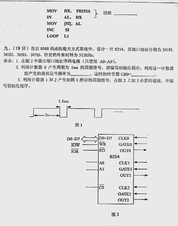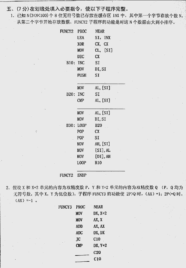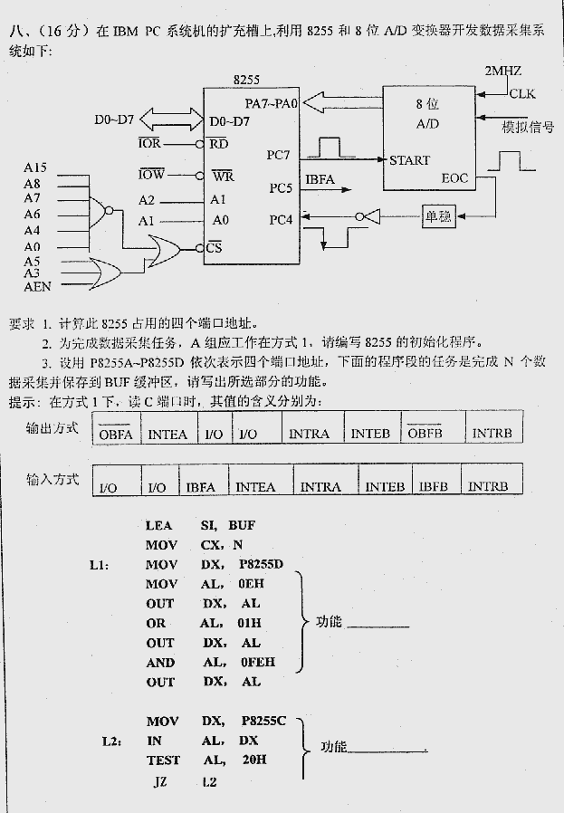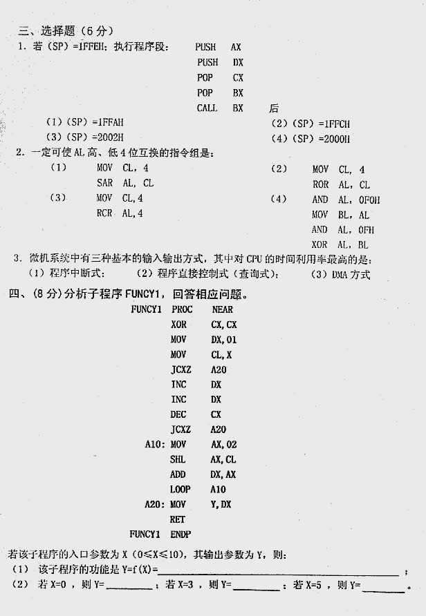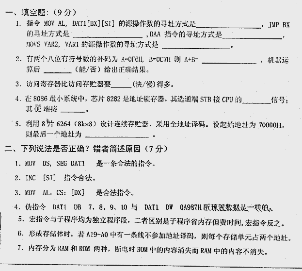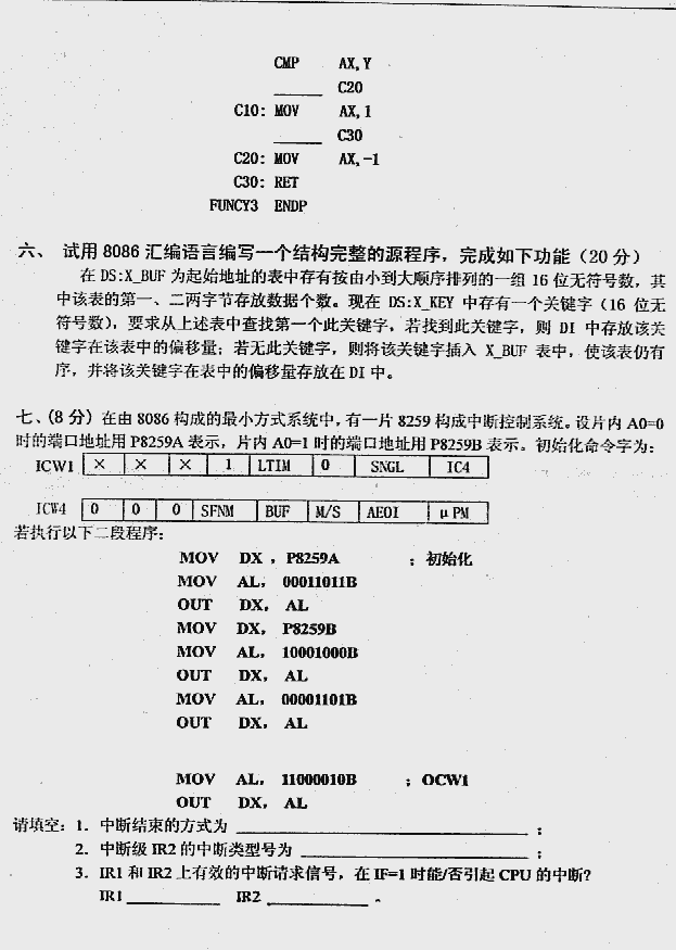 西安电子科技大学2000年半岛在线注册真题-微机原理与程序设计(16位)