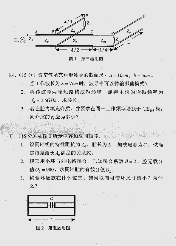西安电子科技大学2000年半岛在线注册真题-微波技术与天线基本理论