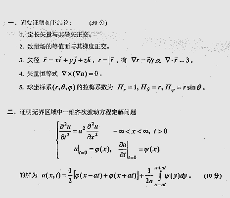 西安电子科技大学2000年半岛在线注册真题-场论与数理方法