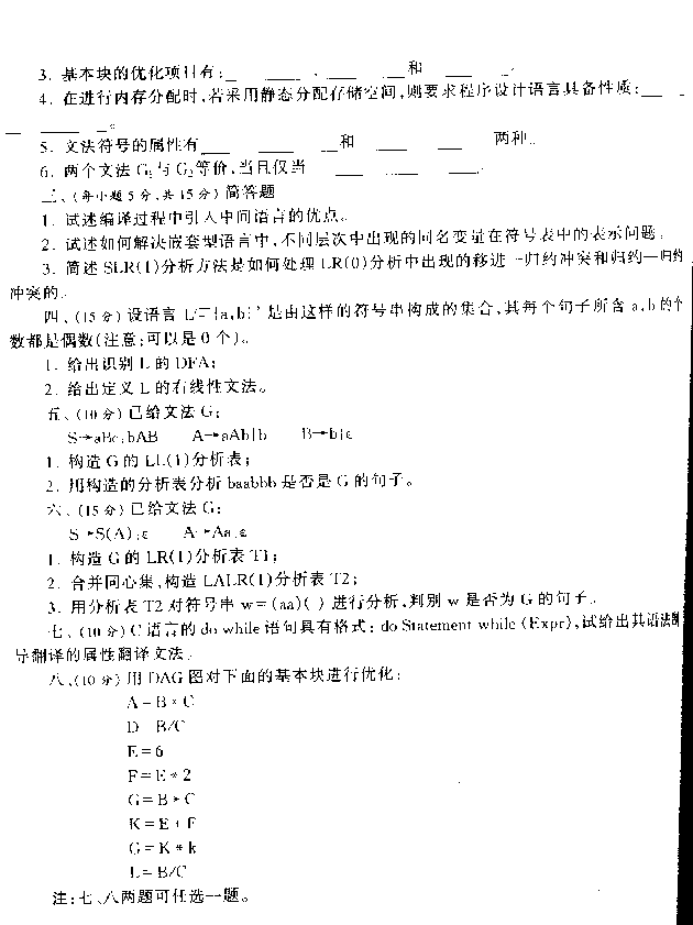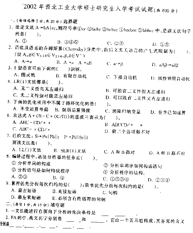 专业课半岛在线注册经验 本站小编 FreeKaoyan 2018-01-22西北工业大学2000年半岛在线注册真题-编译原理