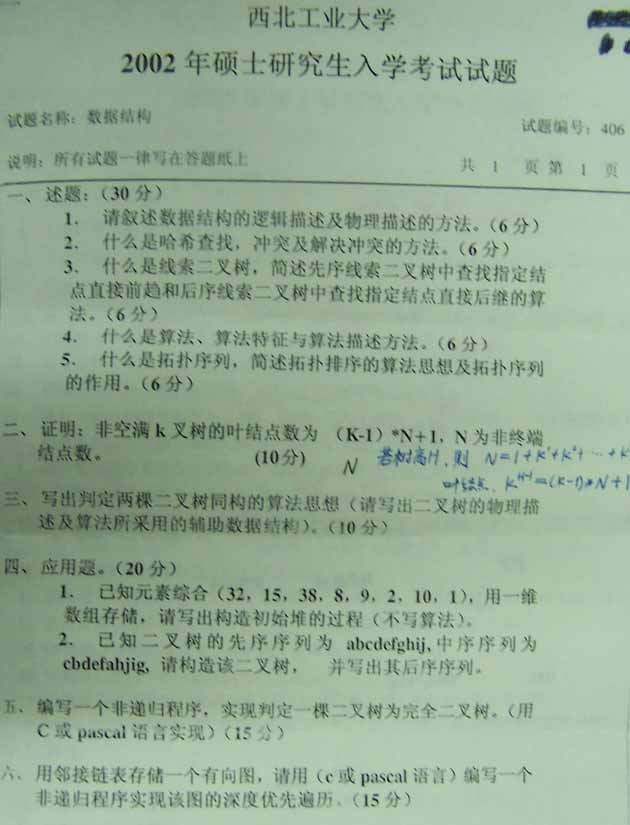 西北工业大学2002年半岛在线注册真题-数据结构