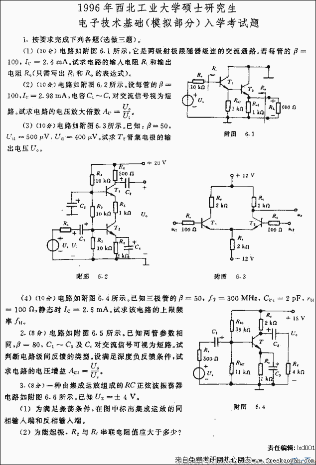 专业课半岛在线注册经验 本站小编 FreeKaoyan 2018-01-22西北工业大学1996年半岛在线注册真题-电子技术基础