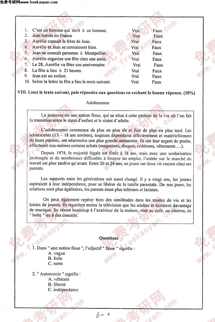 专业课半岛在线注册经验 本站小编 FreeKaoyan 2018-01-22厦门大学1994年普通生物学半岛在线注册试题一、下列各题都只有一个正确答案。请将正确答案前的号码写在题前的括号中,每题0.5分,共10分。1、( )属于碱性氨基酸的是: A、Arg B、Tyr C、Glu D、Ser2、( )干扰素是治疗 的特效药。 A、病毒感染 B、细菌感染 C、真菌感染 D、寄生虫病 ...