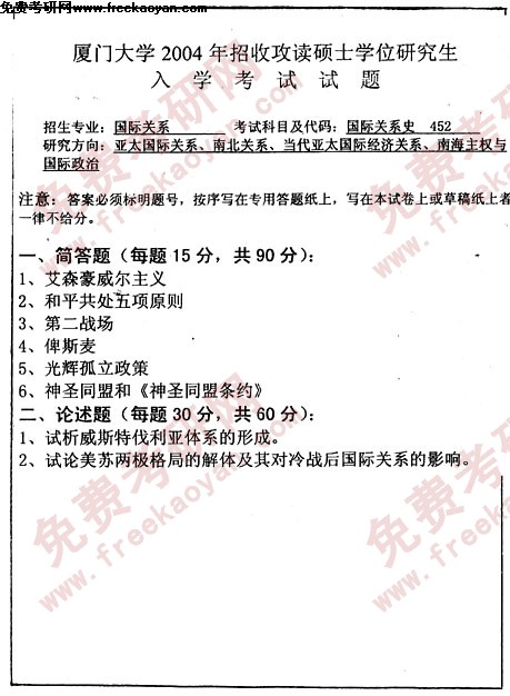 厦门大学1990年硕士研究生入学考试物理化学下载 ...