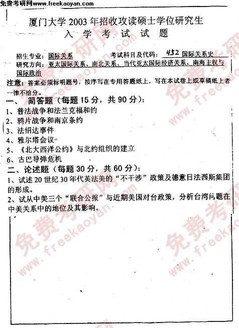 厦门大学1990年硕士研究生入学考试物理化学下载 ...
