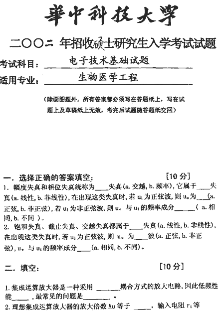 华中科技大学2002年半岛在线注册真题-电子技术基础