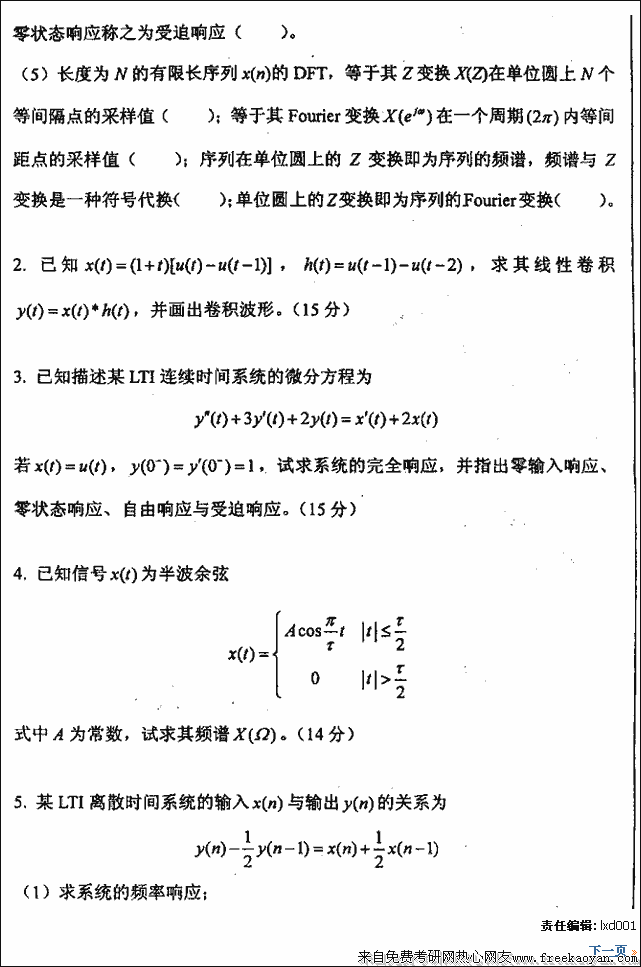 专业课半岛在线注册经验 本站小编 FreeKaoyan 2018-01-22华中科技大学2002年半岛在线注册真题-信号与线性系统