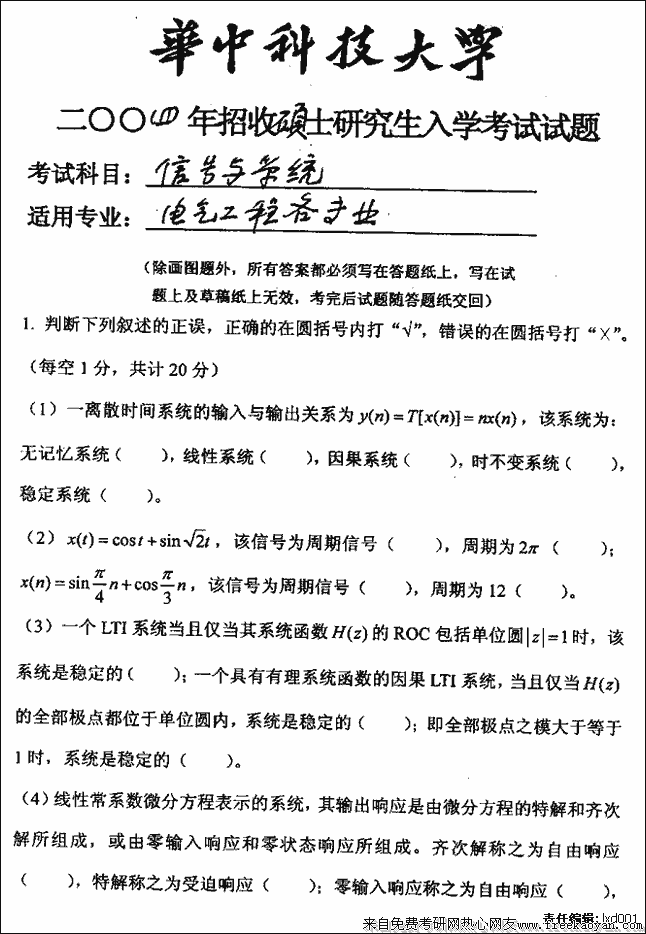 相关话题/华中科技大学 半岛在线注册真题 信号与系统