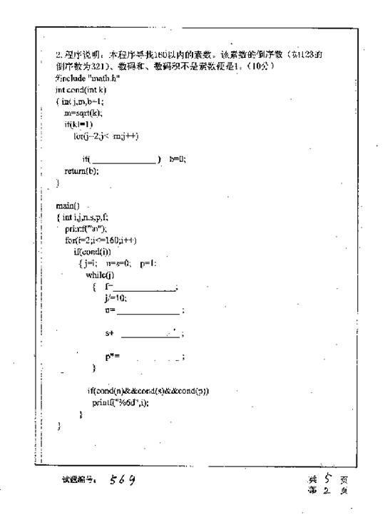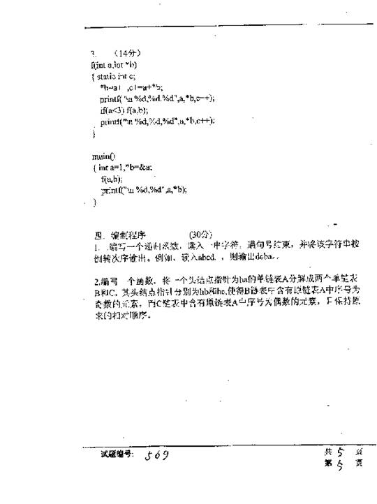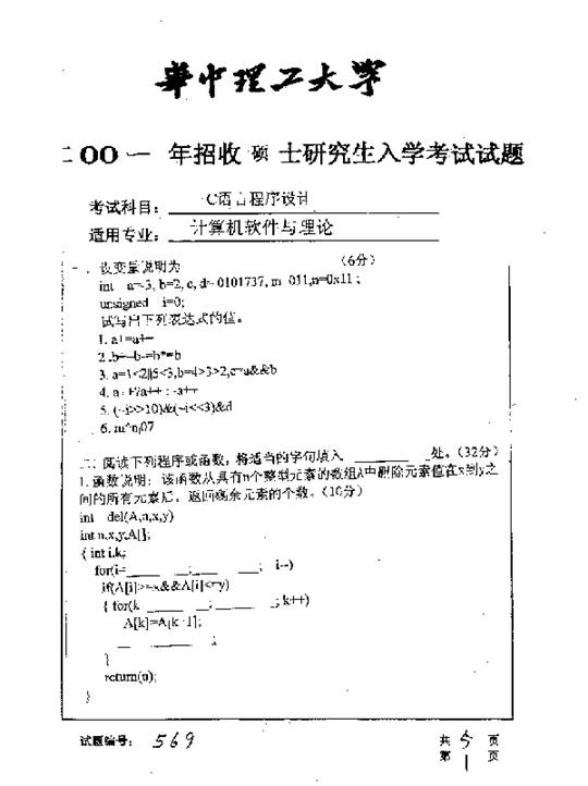 华中科技大学2001年半岛在线注册真题-c语言程序设计