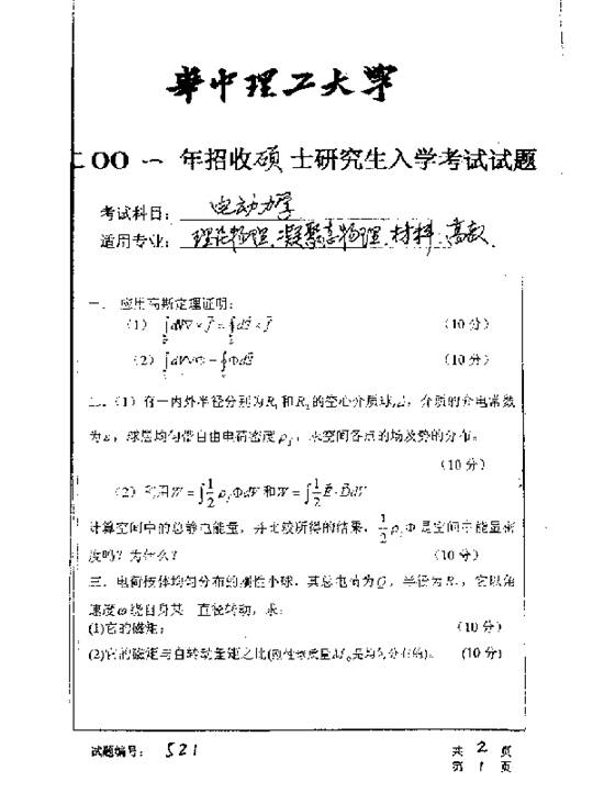 ...专业课半岛在线注册经验 本站小编 FreeKaoyan 2018-01-22华中科技大学2001年半岛在线注册真题-电磁场与电磁波