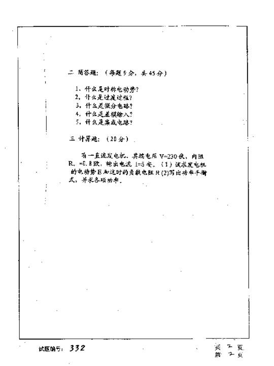 华中科技大学2001年半岛在线注册真题-电工学