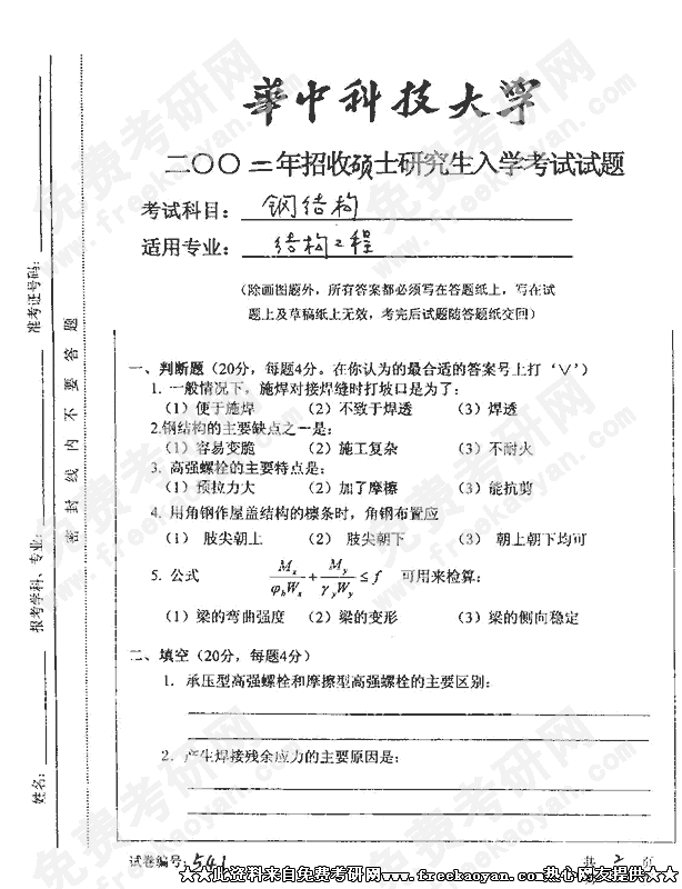 华中科技大学2001年半岛在线注册真题-磁性物理