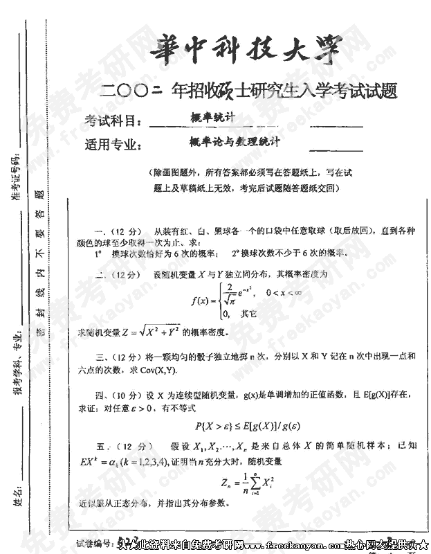 华中科技大学2001年半岛在线注册真题-电磁场与电磁波
