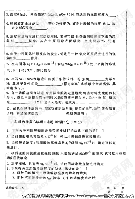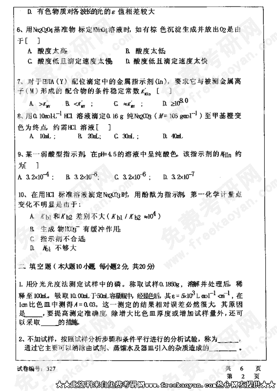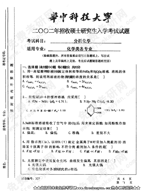 华中科技大学2002年半岛在线注册真题-分析化学