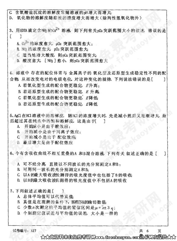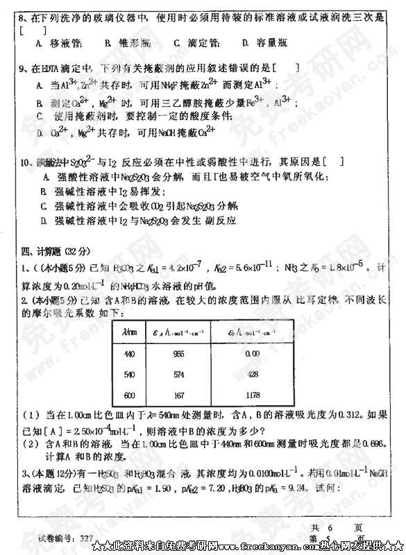 华中科技大学2002年半岛在线注册真题-分析化学试卷(环境)