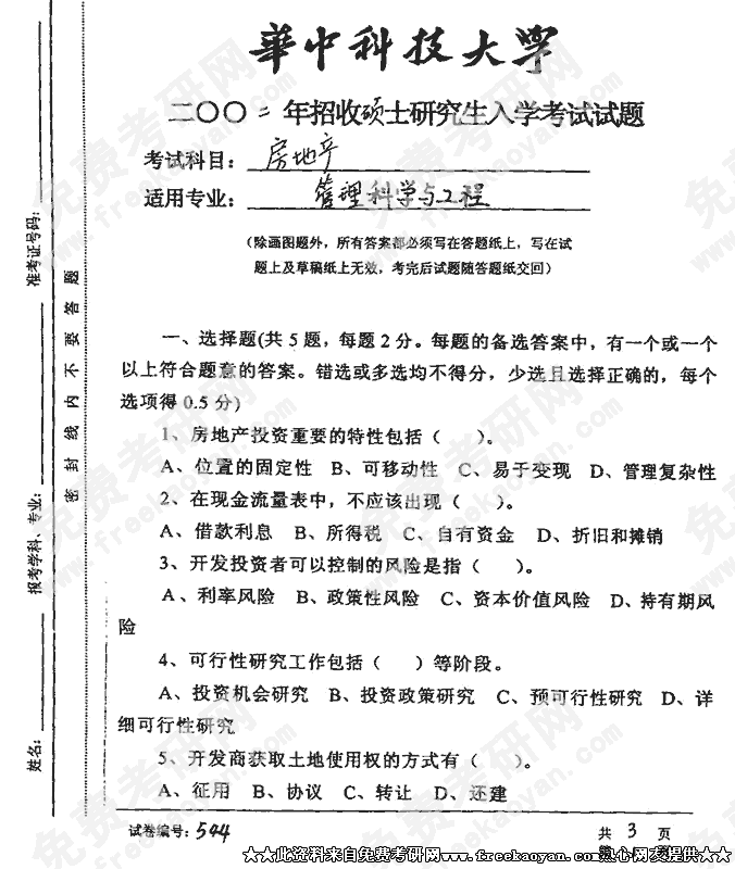 华中科技大学2001年半岛在线注册真题-道路经济与管理