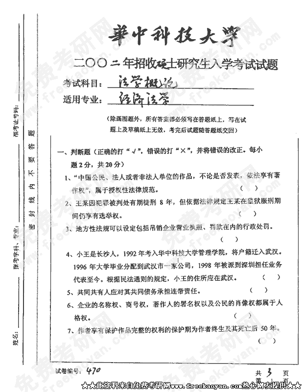 华中科技大学2001年半岛在线注册真题-道路经济与管理