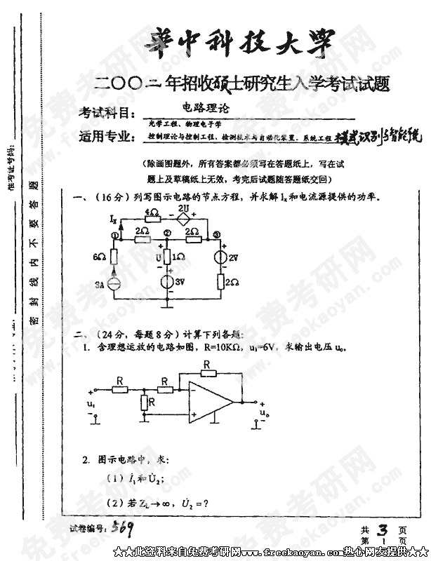 华中科技大学2002年半岛在线注册真题-电子技术基础