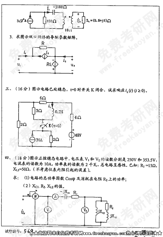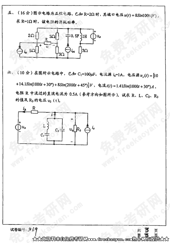 华中科技大学2001年半岛在线注册真题-电工学