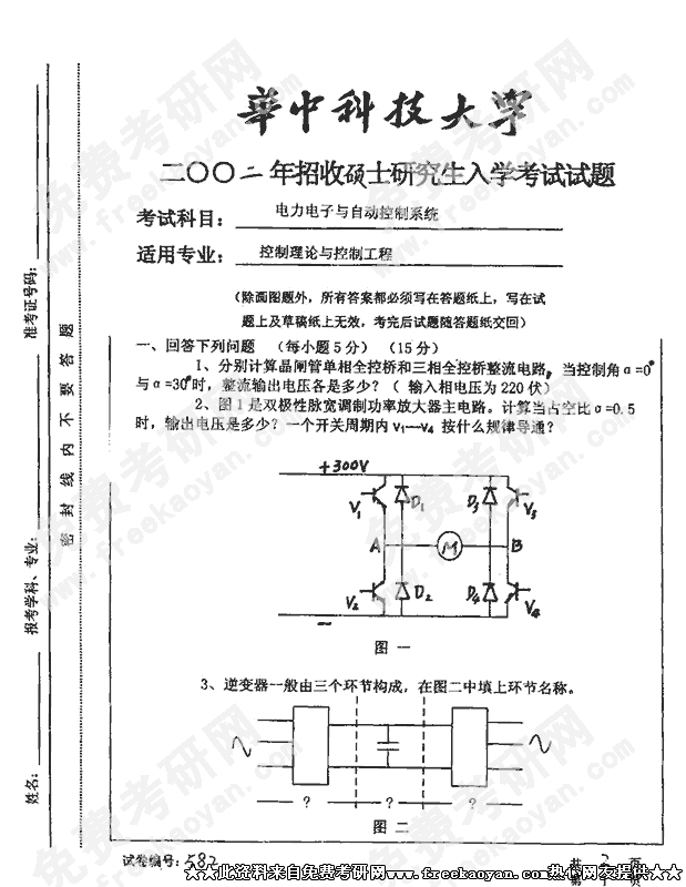 华中科技大学2002年半岛在线注册真题-电力电子与自动控制系统