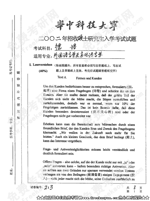 华中科技大学2002年半岛在线注册真题-俄语(二外)