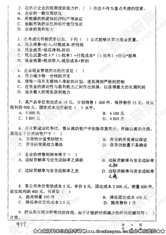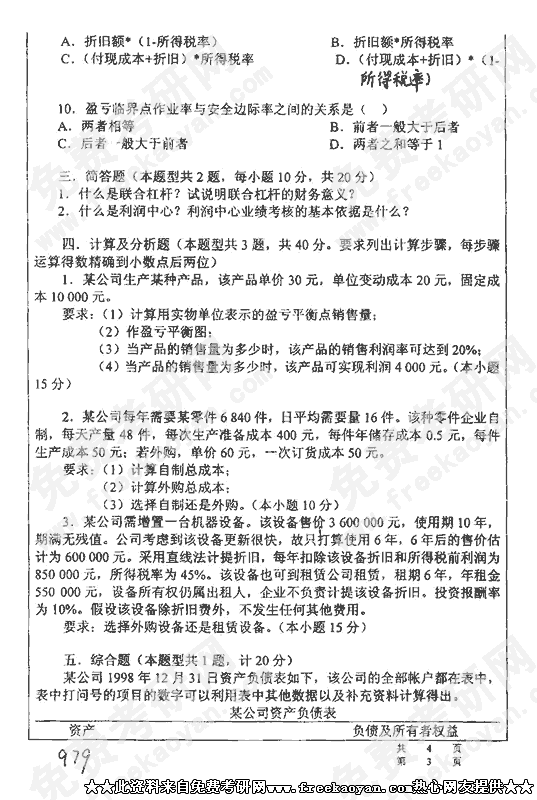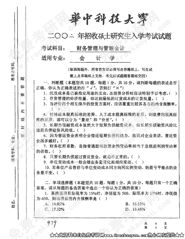 华中科技大学2002年半岛在线注册真题-财务管理与管理会计