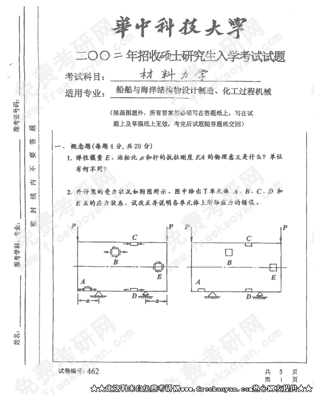 华中科技大学2002年半岛在线注册真题-材料力学C