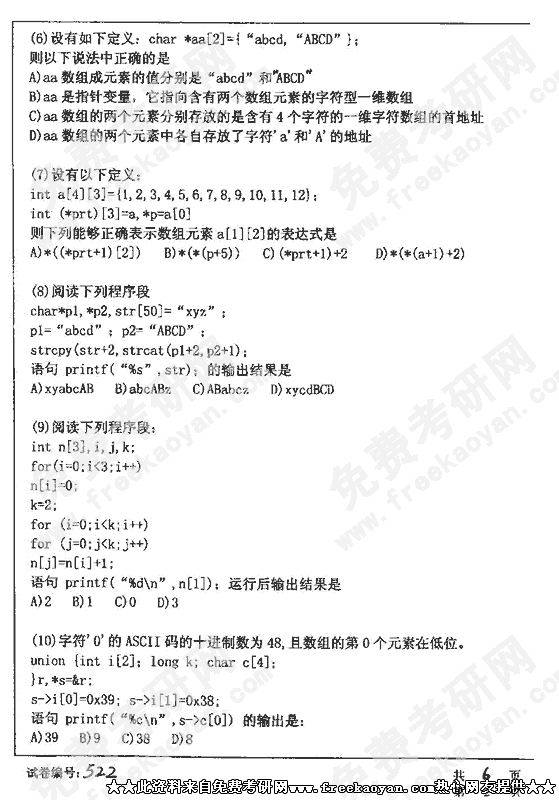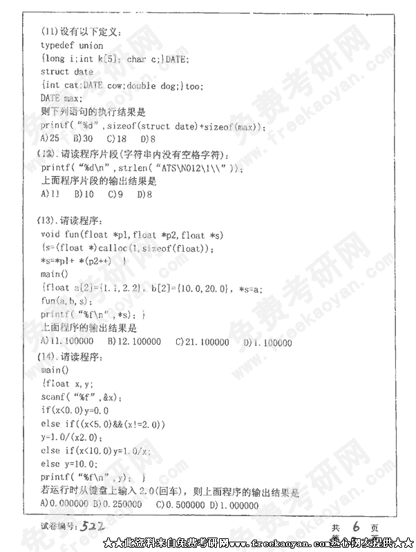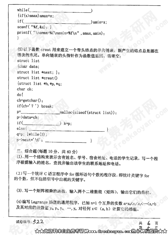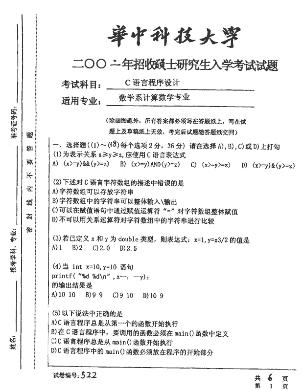华中科技大学2002年半岛在线注册真题-C语言程序设计B