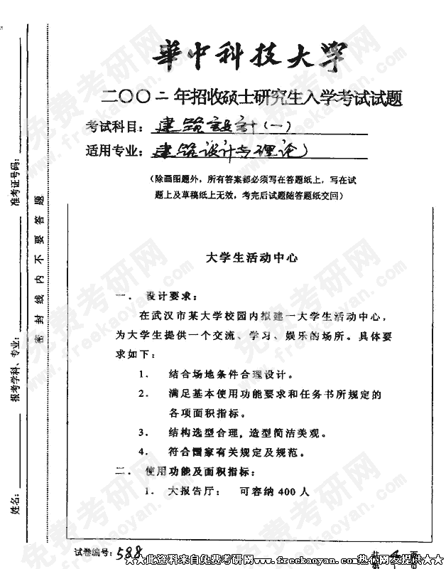 华中科技大学2002年半岛在线注册真题-建筑设计(一)