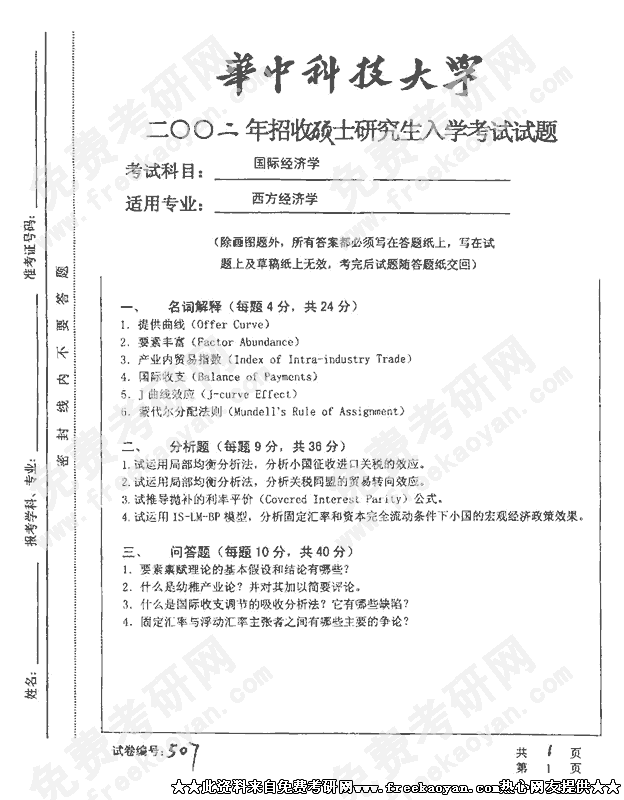 专业课半岛在线注册经验 本站小编 FreeKaoyan 2018-01-22华中科技大学2002年半岛在线注册真题-货币银行学