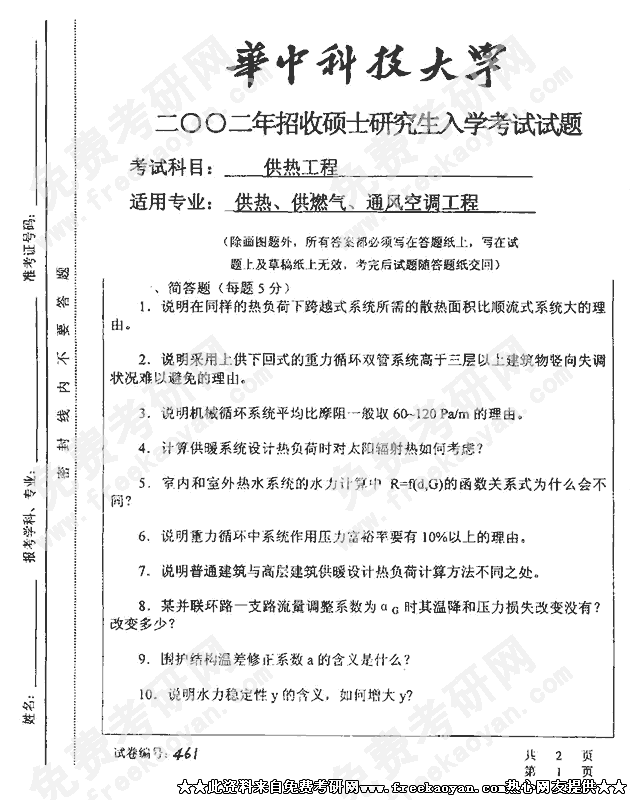 华中科技大学2002年半岛在线注册真题-锅炉原理