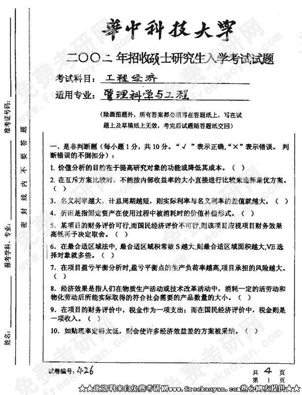 华中科技大学2002年半岛在线注册真题-管理经济学