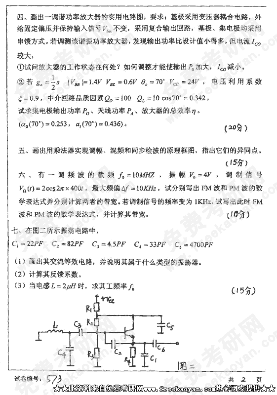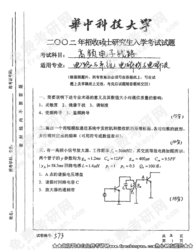 华中科技大学2002年半岛在线注册真题-高频电子线路