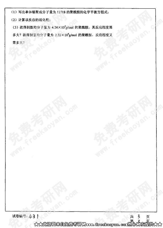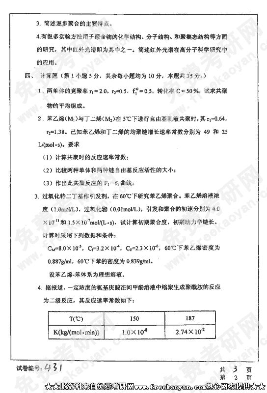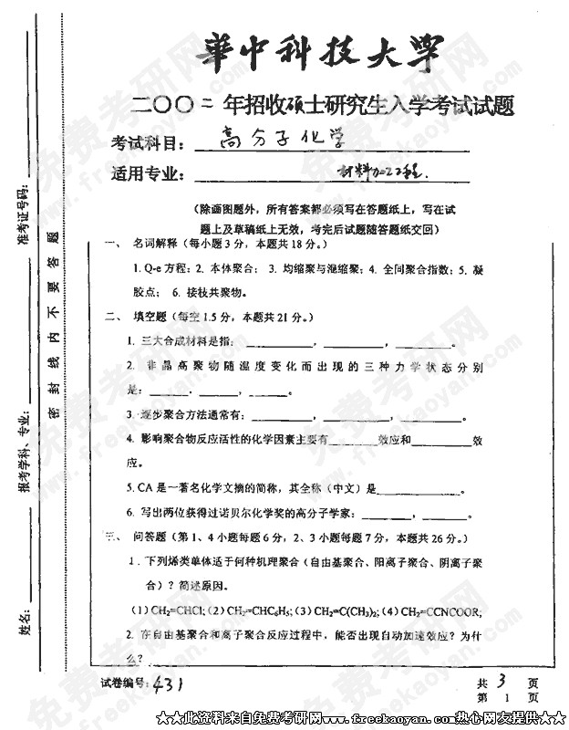 华中科技大学2002年半岛在线注册真题-高分子化学