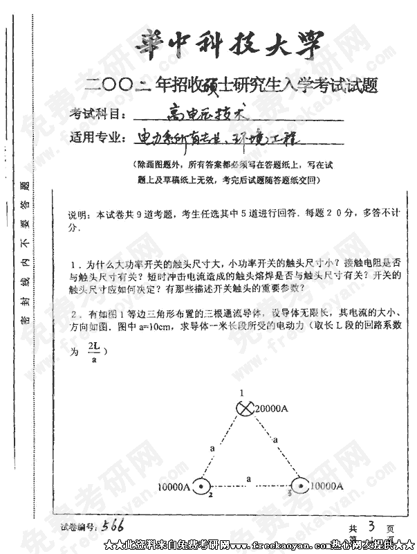 华中科技大学2002年半岛在线注册真题-高电压技术