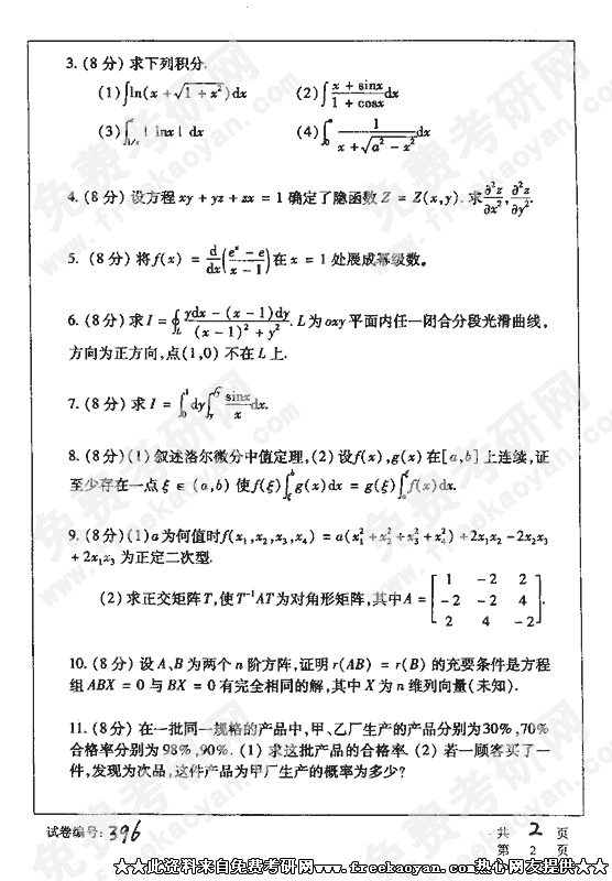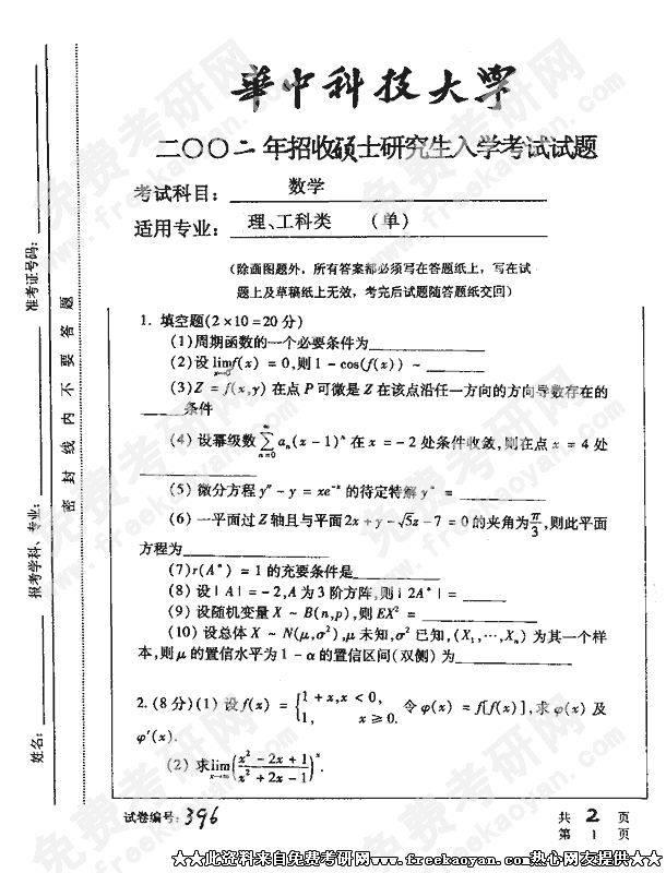 华中科技大学2002年半岛在线注册真题-数学