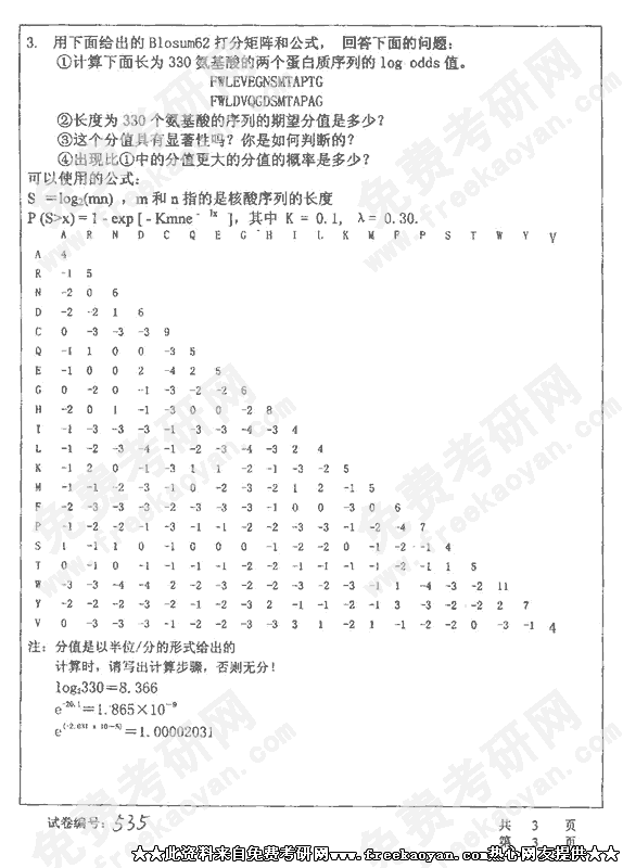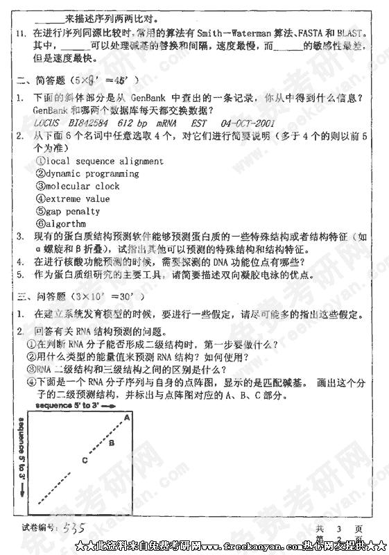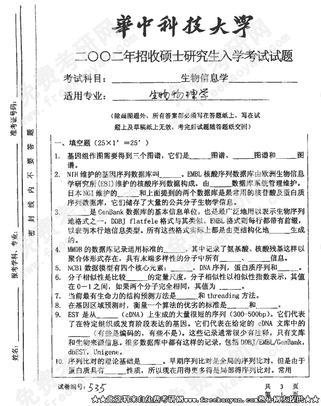 华中科技大学2002年半岛在线注册真题-生物信息学