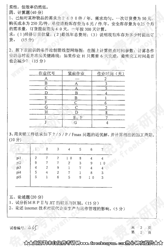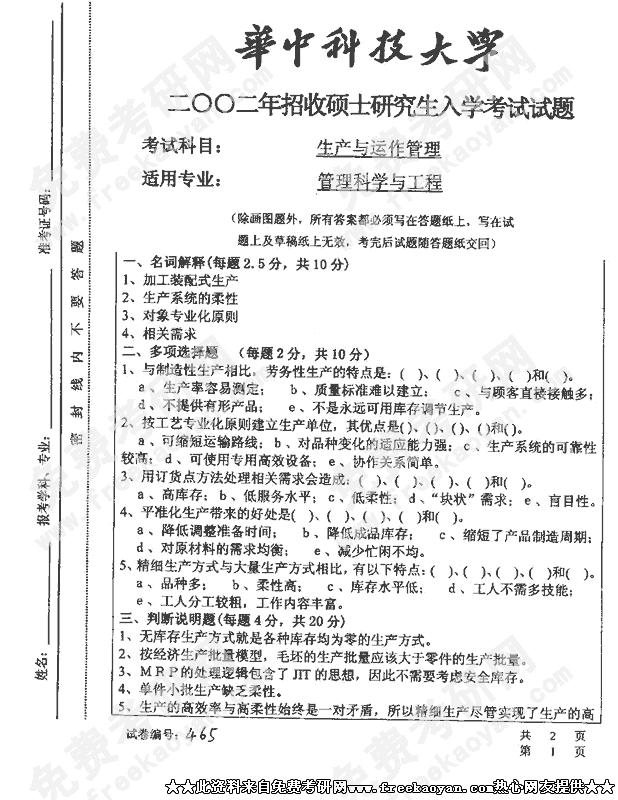 华中科技大学2002年半岛在线注册真题-生产与运作管理
