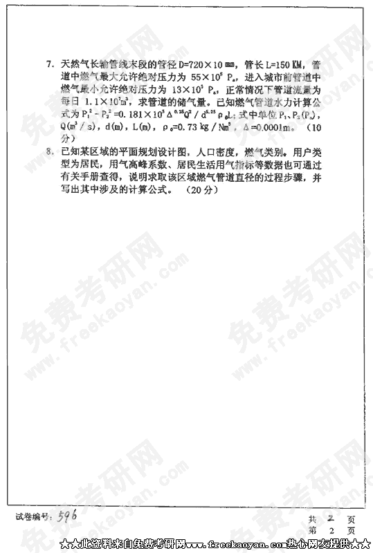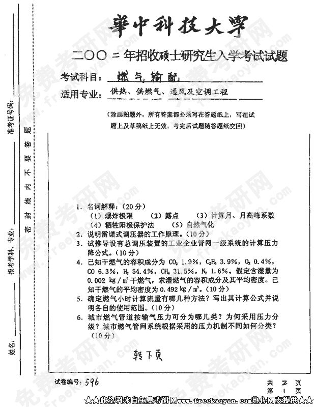 华中科技大学2002年半岛在线注册真题-燃气输配
