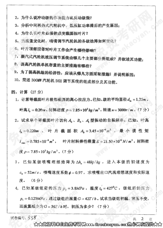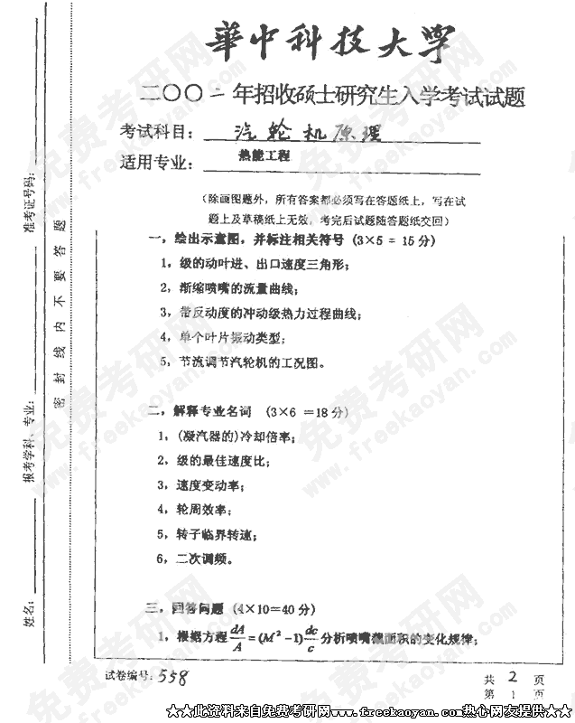 华中科技大学2002年半岛在线注册真题-汽轮机原理