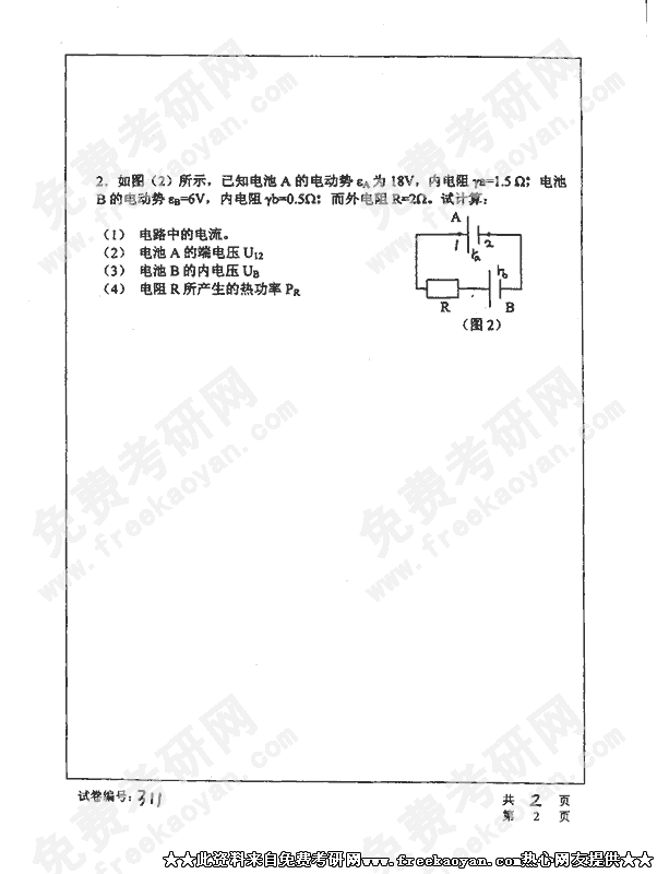 华中科技大学2002年半岛在线注册真题-普通物理学