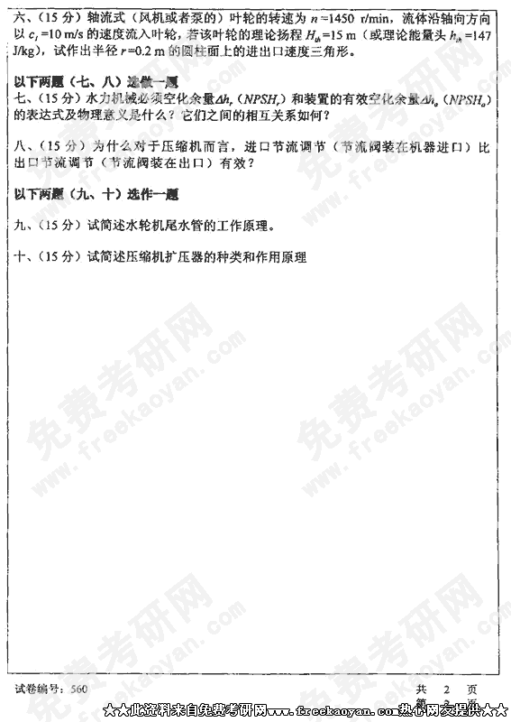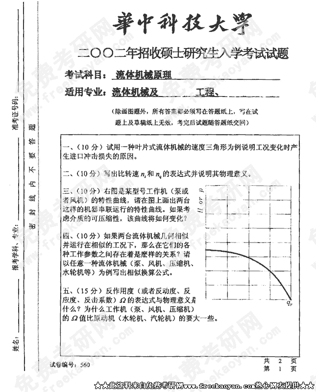 华中科技大学2002年半岛在线注册真题-流体机械原理