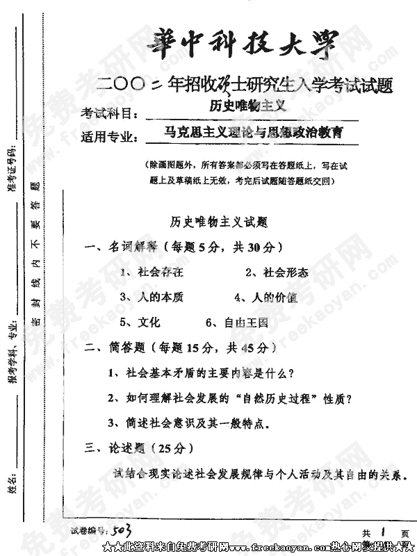 专业课半岛在线注册经验 本站小编 FreeKaoyan 2018-01-22华中科技大学2002年半岛在线注册真题-马克思主义哲学