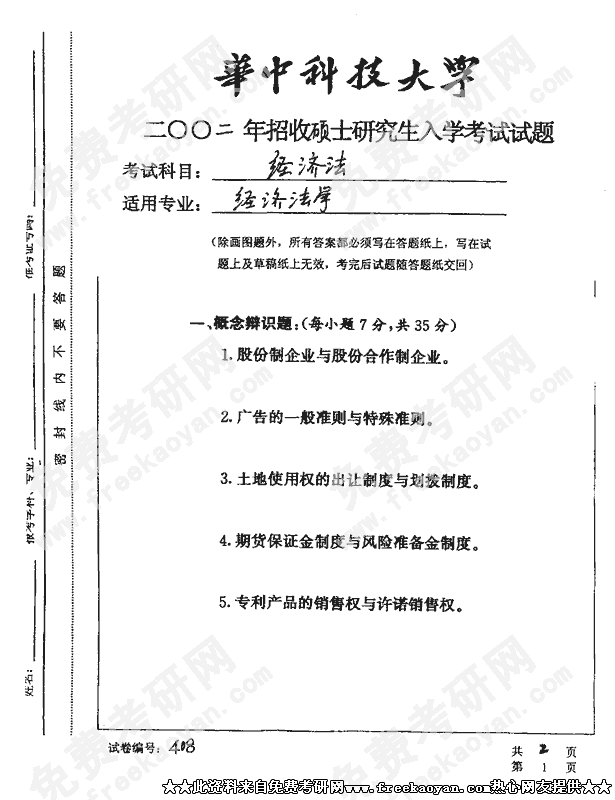 华中科技大学2002年半岛在线注册真题-经济学原理